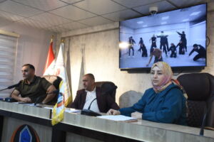 Lecturing in the seminar were Assistant Professor Ma’idah Tariq, Lecturer Hala Mustafa, Lecturer Nour Khalif, Lecturer Mohammed Nizar, Assistant Lecturer Raghad Faisal, Assistant Lecturer Riyad Arif, with Assistant Professor Dr. Zaid Tariq managing the session. The seminar aimed to increase community awareness and limit this negative phenomenon through art as an awareness tool, in addition to the interventions and questions that enriched the seminar with scientific and practical suggestions and recommendations, which will be submitted to the relevant authorities.