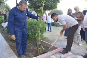 Held on Thursday, October 30, 2025, the campaign took place in the college gardens as part of the voluntary encouragement initiative launched by the University of Mosul. The event was attended by the Associate Deans, as well as several staff members and students. The initiative featured tree donations from college personnel to be planted on-site, aiming to foster a sense of responsibility toward climate preservation and environmental safety. Furthermore, it sought to encourage the spirit of initiative and volunteerism while achieving Sustainable Development Goals (SDG 5 and SDG 13).