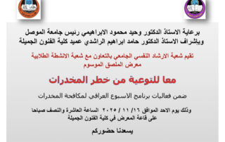 Under the patronage of Professor Dr. Waheed Mahmoud Al-Ibrahimi, President of the University of Mosul, and under the supervision of Professor Dr. Hamid Ibrahim Al-Rashidi, Dean of the College of Fine Arts, the Psychological Counseling [Read More]