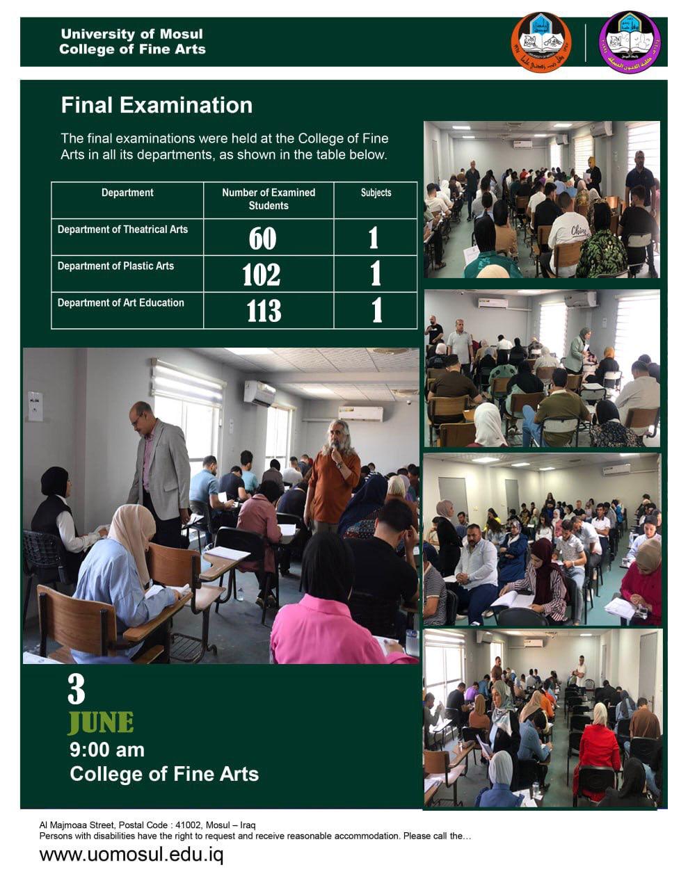Under the supervision of Professor Dr. Hamid Ibrahim Al-Rashidi, Dean of the College of Fine Arts, and with the follow-up of Professor Dr. Bashar Abdul Ghani Mohammed, Assistant Dean for Scientific Affairs, exams for graduate [Read More]