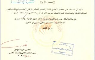 The Ministry of Higher Education and Scientific Research issued a ministerial order signed by His Excellency the Minister of Higher Education and Scientific Research, Dr. Naeem Al-Aboudi, granting the Department of Theater Arts programmatic accreditation [Read More]