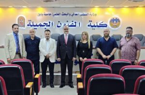 Professor Dr. Hamid Ibrahim Al-Rashidi, Dean of the College of Fine Arts at the University of Mosul, chaired the Ministerial Committee for the establishment of a PhD program in Fine Arts (Painting) at the College of Fine Arts, University of Babylon. Furthermore, Prof. Dr. Munqidh Muhammad Al-Bajdali, Associate Dean for Administrative Affairs, chaired the committee for establishing a Master’s program in Theater Arts (Directing Department), while Prof. Dr. Mayada Majeed Al-Bajalan chaired the committee for establishing a Master’s program in Theater Techniques.
