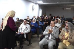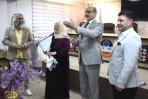 The College of Fine Arts today, Tuesday, August 13, 2025, held an honoring ceremony for Mrs. Nahida Annaz Mustafa upon her retirement. The event was attended by Professor Dr. Hamid Ibrahim Al-Rashidi, Dean of the College of Fine Arts, along with his scientific and administrative assistants and a number of college staff.