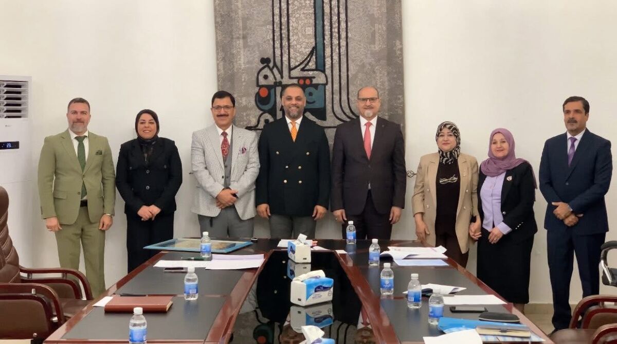 The Chairman and members of the Committee of Deans of Fine Arts Colleges in Iraq discussed several topics listed on the agenda. Key discussion points included unifying the academic framework for arts curricula in Iraqi universities, activating scientific and cultural partnerships between colleges, and promoting the exchange of expertise among teaching and technical staff, in addition to efforts to enhance the quality of scientific research.