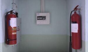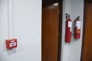The Dean of the College of Fine Arts inspects the fire protection systems.