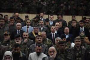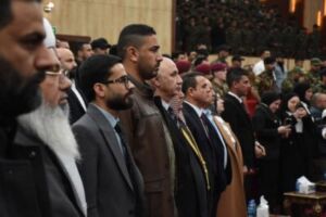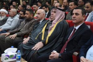 In the presence of the President of the University of Mosul, Professor Wahid Mahmoud Al-Ibrahimi; Professor Nashat Mubarak Saliwa, Dean of the College of Fine Arts; Dr. Ahmed Al-Hasoud, Chairman of the Nineveh Provincial Council; representatives of the Popular Mobilization Forces; members of the Council of Deans of the Colleges of Fine and Applied Arts in Iraq; and academic, cultural, artistic, and scientific elites from Iraqi universities.