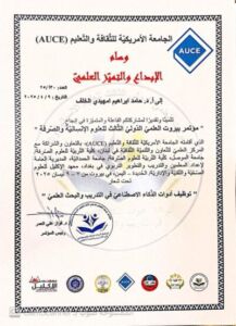 Professor Hamid Ibrahim Al-Rashidi, a lecturer at the College of Fine Arts, received the Creativity and Scientific Excellence Medal for his participation in the Third Beirut International Scientific Conference for the Humanities and Pure Sciences, held by the American University of Culture and Education in cooperation and partnership with the Scientific Center for Cultural Cooperation and Development in Beirut from April 7-9, 2025, under the theme “Using Artificial Intelligence Tools in Training and Scientific Research.”