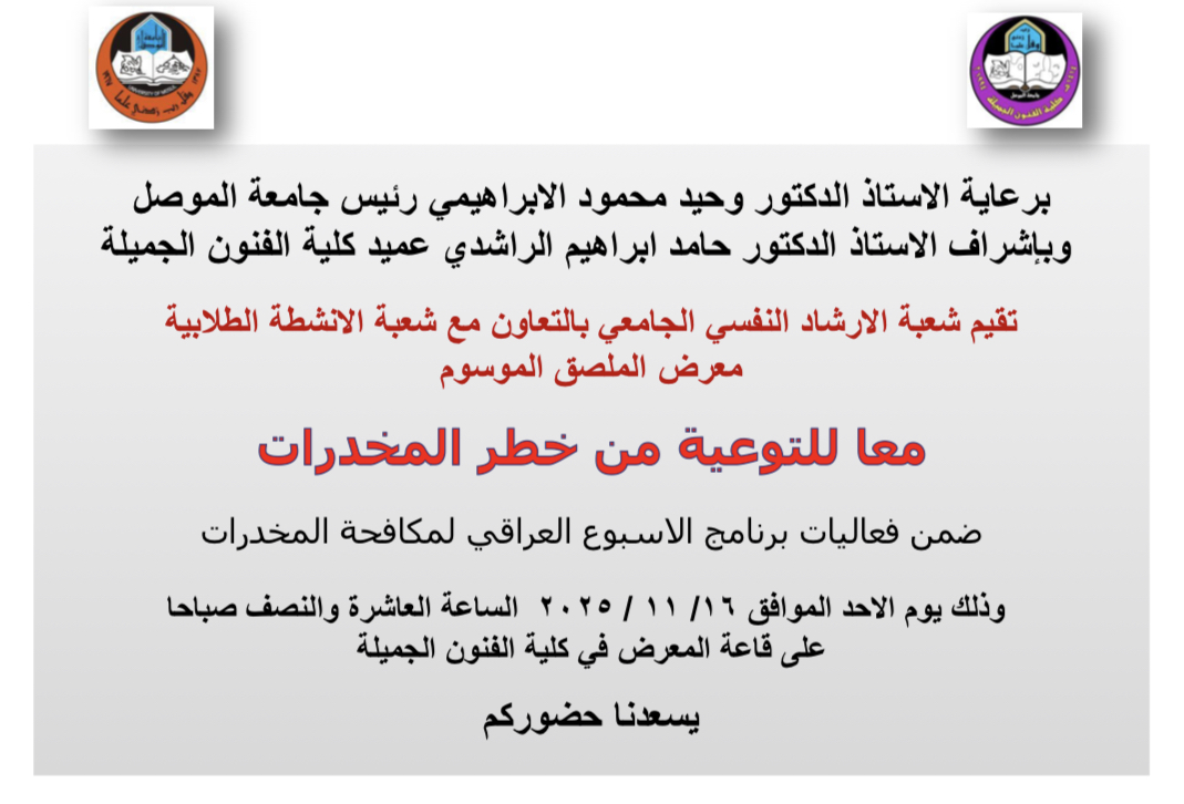 “Together to Raise Awareness of Drug Risks – Poster Exhibition within the Events of the Iraqi Anti-Drug Week”