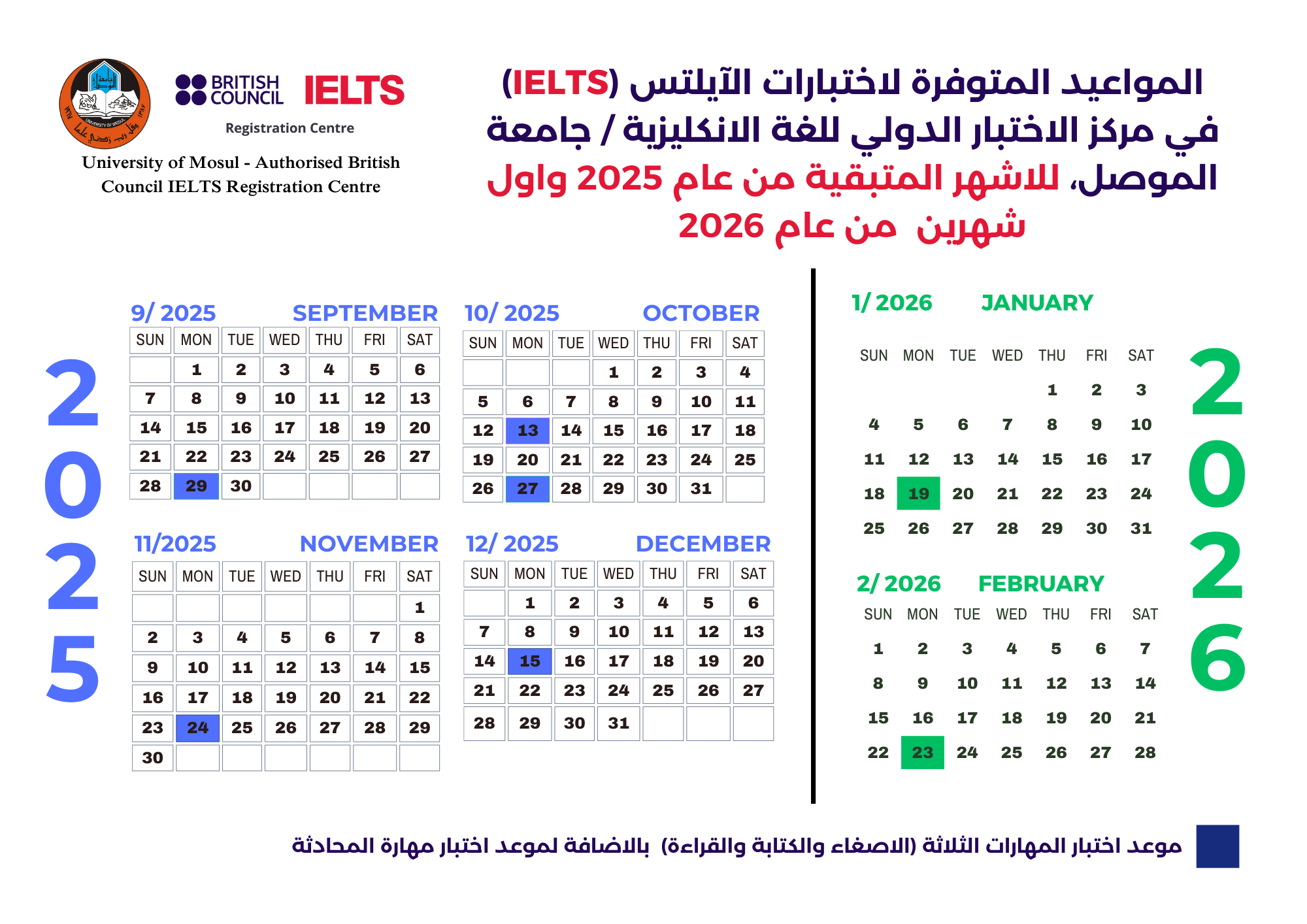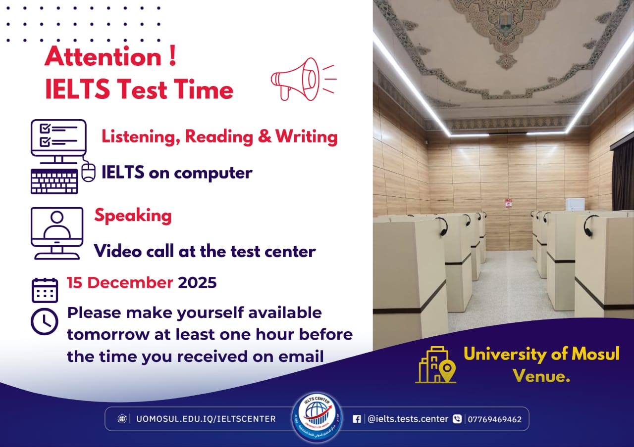 Hopefully, the IELTS center at the University of Mosul will be a place to achieve your aspirations and elevate your English language skills. We are excited to start this journey and looking forward to fruitful cooperation and shared successes.