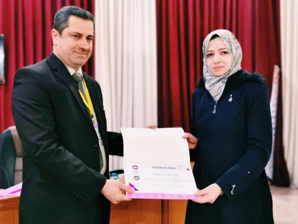 Under the auspices of Prof. Dr. Kossay Al-Ahmady, President of the University of Mosul, and in the presence of Prof. Dr. Munir Salem Taha, University Vice President for Scientific Affairs, and a number of college deans and interested specialists, the Sociology Department of the College of Arts, in cooperation with the Common Denominator Foundation and with the support of IREX Organization, held the closing session of the project (Empowering Youth and Fighting Extremist Ideology) in the hall of the Scientific and Literary Forum on Monday morning, December 23, 2019. The session included the training of 145 lecturers from various colleges and centers of the University, including the Central Library. At the end of the session, Ms. Rawaa Salahuddin and Ms. Zina Tariq, lecturers in the Central Library, were awarded participation certificates by the Sociology Department in recognition of their active participation in this vital academic project. Mr. Sayf Al-Ashqar, Secretary-General of the University Libraries, expressed the importance of the participation of the library staff in the activities to acquire skills to build better abilities.