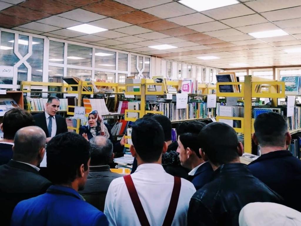 Within the vision of Prof. Dr. Kossay Al-Ahmady, President of the University of Mosul, to keep communicating with Nineveh Governorate’s scientific and educational communities, and with sustained follow-up from Mr. Sayf Al-Ashqar, Secretary-General of the University Libraries, a delegation of teachers and students from Bartella Preparatory School for Boys visited the Central Library and Ibn Khaldun Library as well as the Center of Mosul Studies as part of a scientific visit to the University of Mosul. The visit was to communicate the scientific and cultural importance of the University and its libraries for professors, students and the Governorate’s society. During the visit, Mr. Akram Hussain, Administrative Official in Ibn Khaldun Library, and Ms. Rafal Khalid, Head of the User Services Unit in the Central Library, briefed the visitors with a detailed explanation about the University libraries. At the end of the visit and on behalf of the School’s Administration, Mr. Adnan Ezzat expressed his appreciation for the efforts made by the Library’s General Secretariat and staff to serve the scientific and cultural process at the University and society