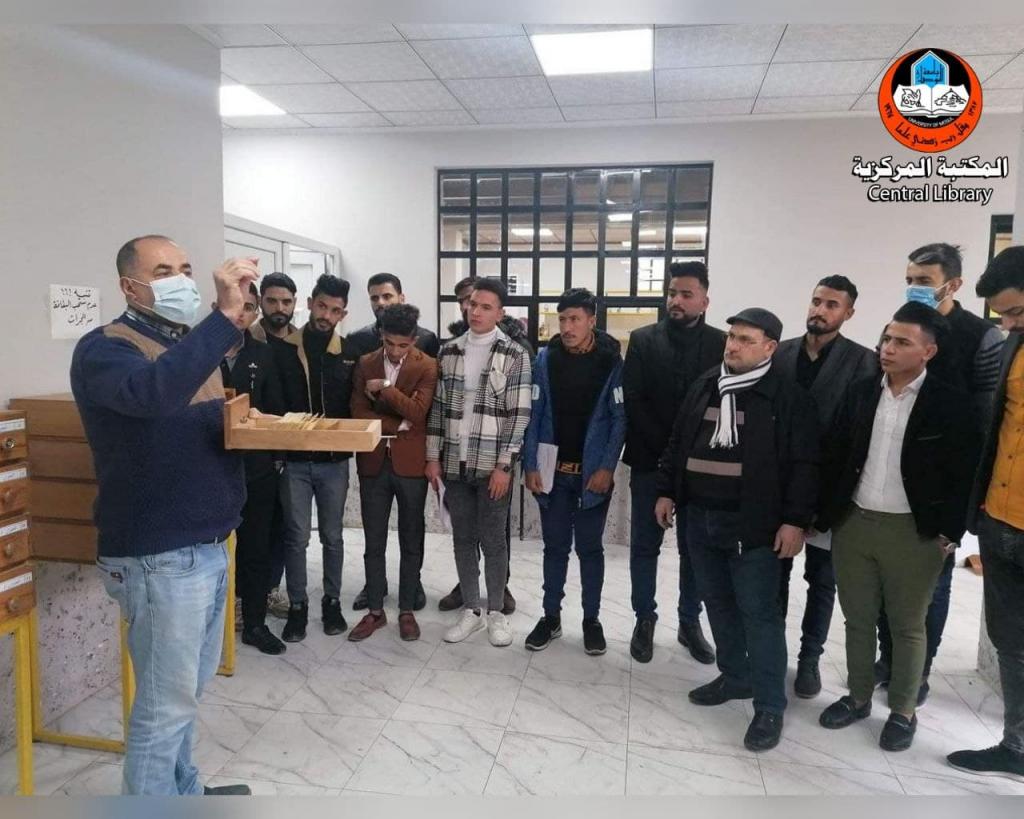 Within the framework of scientific coordination and cooperation at the University of Mosul, and with a follow-up from the General Secretariat of the University Libraries, Ibn Khaldun Library received a group of professors and first-year students, Department of Arabic Language at the College of Basic Education, who paid a visit to the Library under the supervision of Dr. Aamer Sadun to see on the ground the very important services provided by Ibn Khaldun Library. The group was briefed of the Library’s services and future aspirations. Dr. Aamer Sadun was grateful for the reception and the efforts made by the library staff to make the visit successful, wishing them success in their efforts to serve the scientific and cultural progress at the University of Mosul.