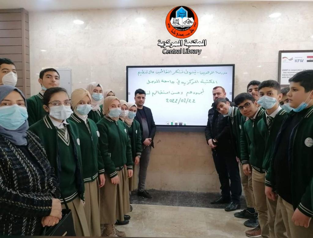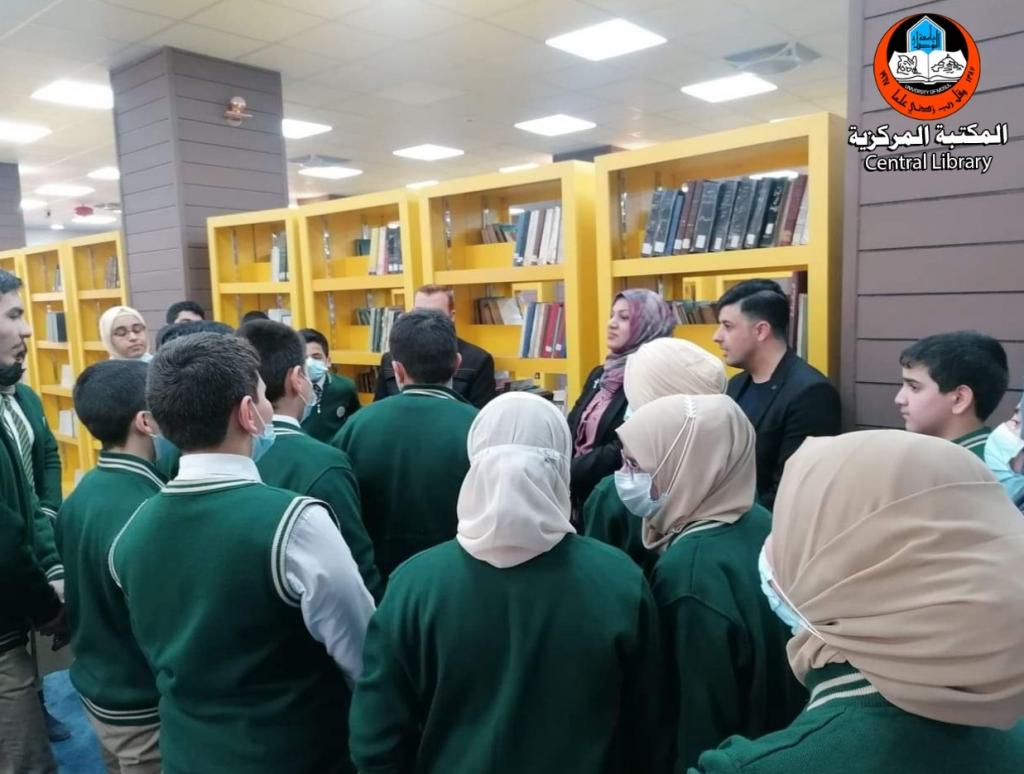 With a follow-up from the General Secretariat of the University Libraries, a group of teachers and students from Al- Mawhoobin (the gifted) School visited the recently reconstructed and reopened Central Library. They were received by Ms. Rafal Khaled Alhamandi, official of the Division of Library User Services, who took them in a tour in the Central Library to get them learn about the importance of books and libraries in building countries. The visitors were grateful to the Central Library for the reception and for its efforts to serve the cognitive process in our dear country.