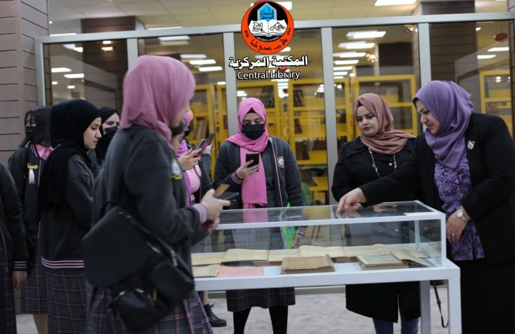 With a follow-up from the General Secretariat of the University Libraries, a group of teachers and students from Kimmat Altamayyuz Private Secondary School for Girls visited the Central Library. They were received by Ms. Rafal Khaled Alhamandi, official of Library User Services Division, who took them in a tour in the Central Library to brief them about the importance of books and libraries in building societies. The visitors were grateful to the Central Library for the welcoming and for the efforts to serve the cognitive process at the University of Mosul