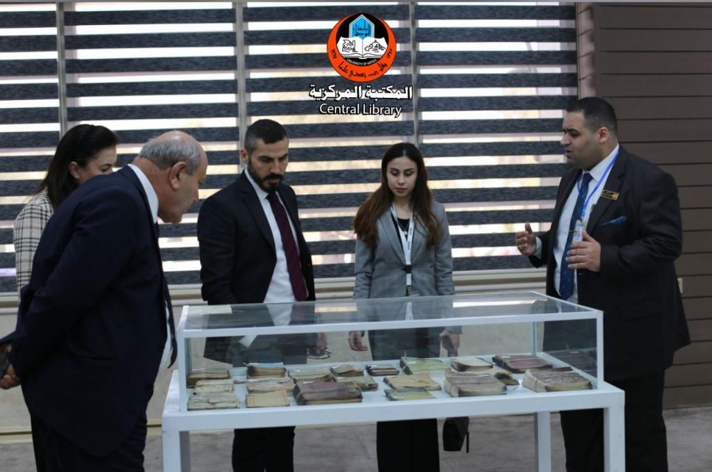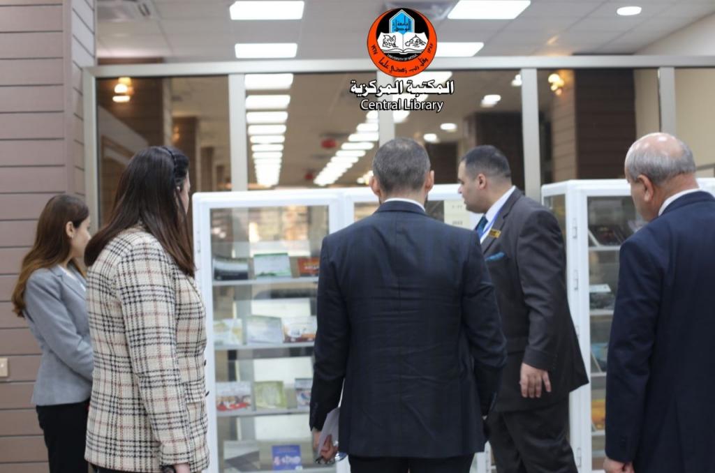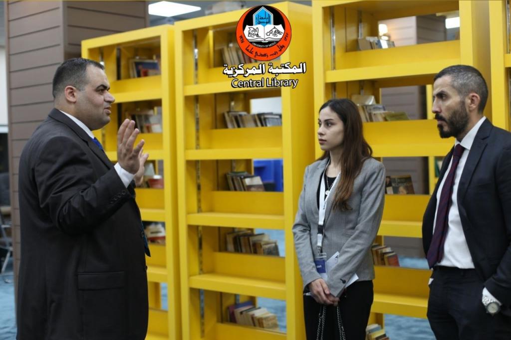 The Secretary General of the University Libraries, Mr. Sayf Al-Ashqar, received Mr. Feras Deep, Project Manager of Dutch SPARK NGO in Iraq, and Dr. Najib Toma, Assistant Rector of Erbil Polytechnic University (EPU), who visited the Central Library after participating in the Student Sustainable Development Conference held by the University of Mosul in cooperation with the German TU Dortmund and Austrian TU Graz. After taking them in a tour in the recently reconstructed Central Library and briefing them on the local, regional and international relentless efforts made to restore it after the unprecedented and deliberate destruction and sabotage by terrorist ISIS, the visitors expressed their wishes for a bright future for the Central Library that befits its reputation as one of the most important scientific and cultural academic edifices in Iraq.