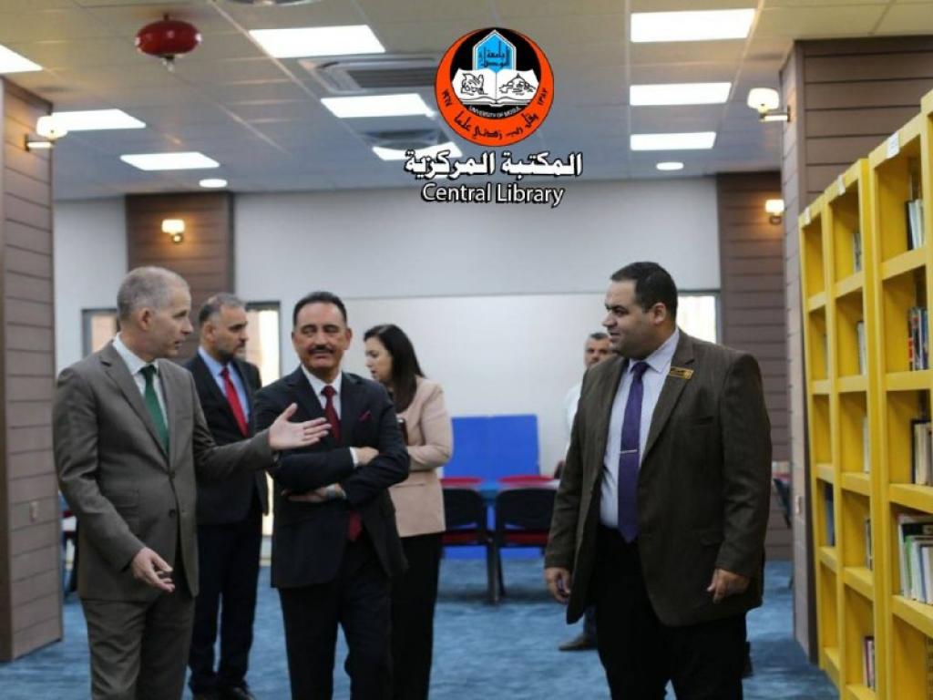 In an effort by the University of Mosul to promote cooperation with diplomatic institutions and personalities, Rector Alahmady received the Director of the British Council, Jim Buttery who paid a visit to the Central Library. The Secretary General of the University Libraries, Mr. Sayf Al-Ashqar, received the visitors, briefing them on the Central Library and its services and the efforts made by the library staff members in serving the Library and its users under the supervision of the President of the University of Mosul. The Director of the British Council expressed his admiration for this achievements, promising that cooperation and coordination between the British Council and the University of Mosul will be strengthened.