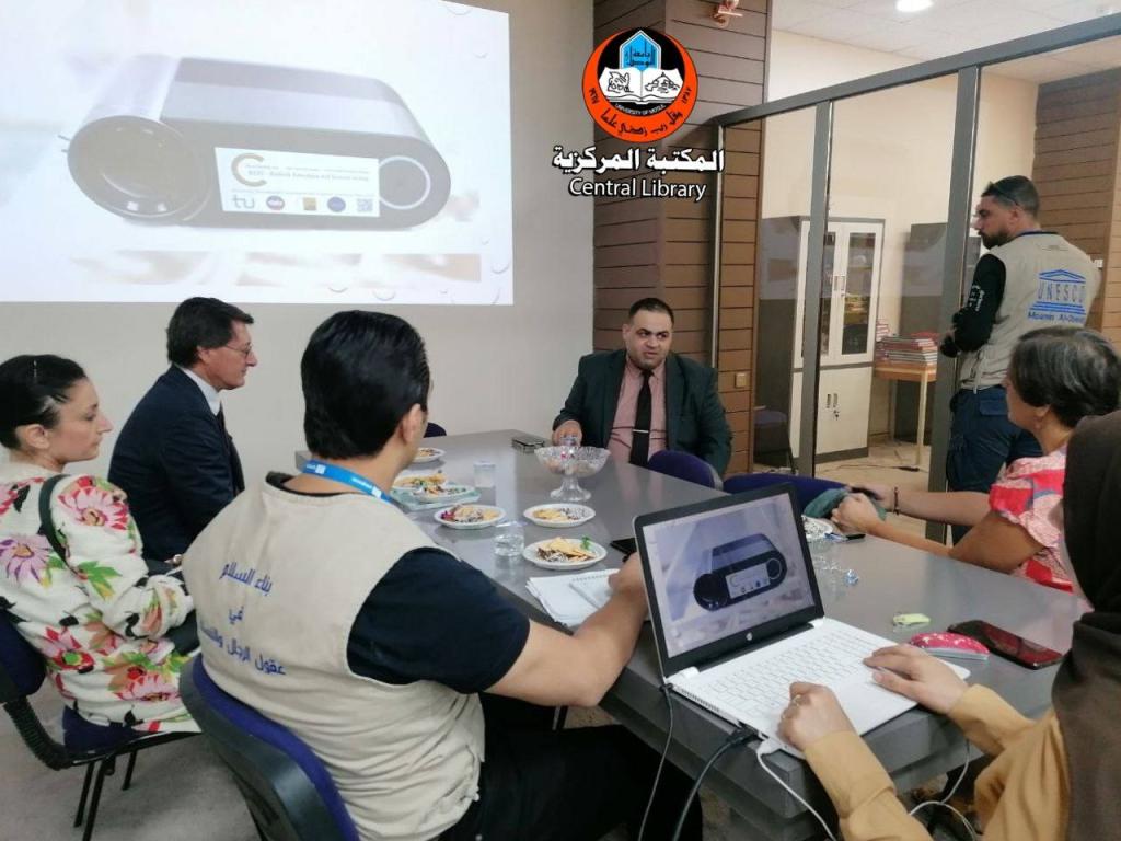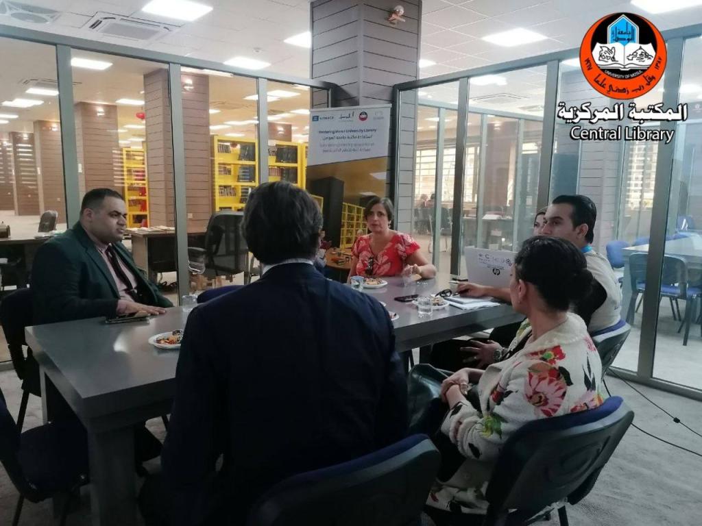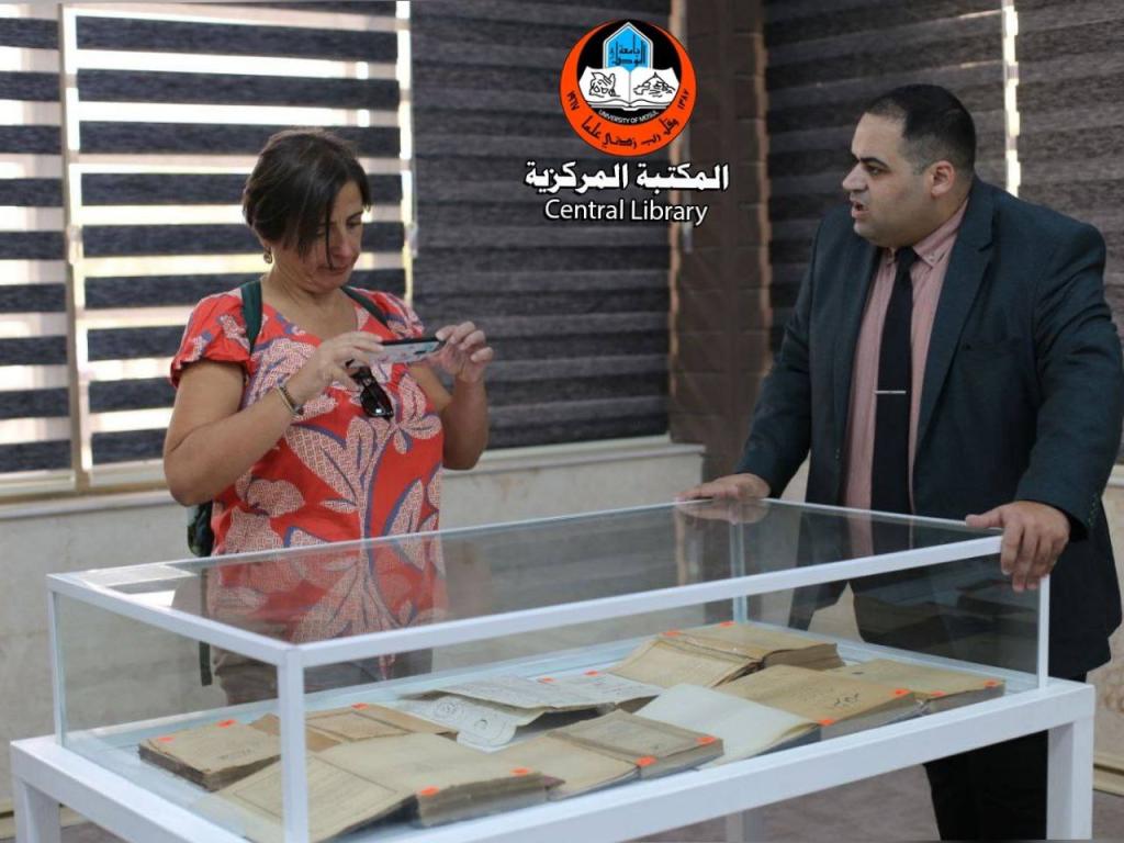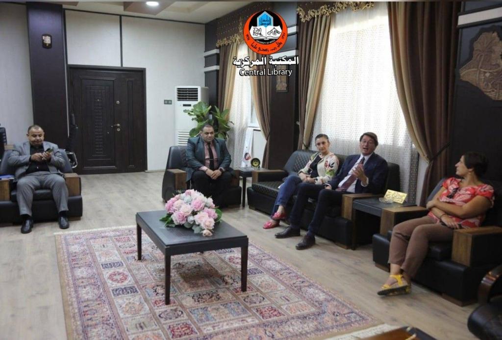 Within the framework of cooperation between the University of Mosul and international organizations and after being received by Prof. Dr. Kossay Alahmady, President of the University of Mosul, a number of senior officials from UNESCO and AICs visited the Central Library and were received by Mr. Sayf Al-Ashqar, Secretary General of the University Libraries, who gave them an overview of the Central Library and its services, showing them the activities and exhibitions that are held there. The visitors expressed their admiration for what is happening in the Central Library, stressing the continuation of their cooperation to develop it.