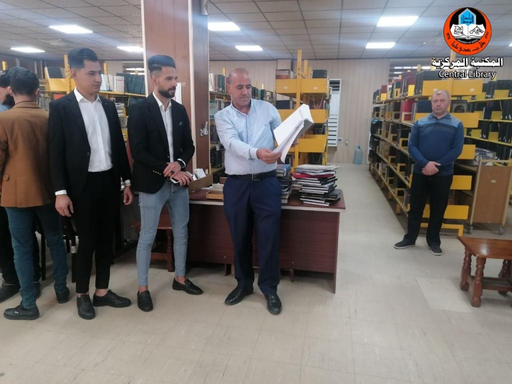 With a follow-up from the General Secretariat of the University Libraries, the Ibn Khaldoon Library received Asst. Prof. Aisha Edris Alkallak accompanied by a number of third-year students from the First Grades Teacher Department, College of Basic Education, University of Mosul. They were taken on a tour inside the Library and they were given an overview of the Library and its services. The visitors were grateful to the General Secretariat of the University Libraries and the library staff members for their efforts to serve library users at the University of Mosul.