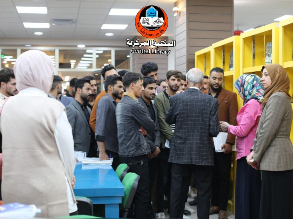 The Central Library received the four-year undergraduates from the College of Education for Humanities accompanied by Dr. Nedhal Muayyad Malallah and Dr. Ahmad Qasem Jumaa, who paid a visit to the library to be briefed on the library services and to give them a field lecture on how to write a historical research . The visitors expressed their appreciation for the reception and the services provided to the library users