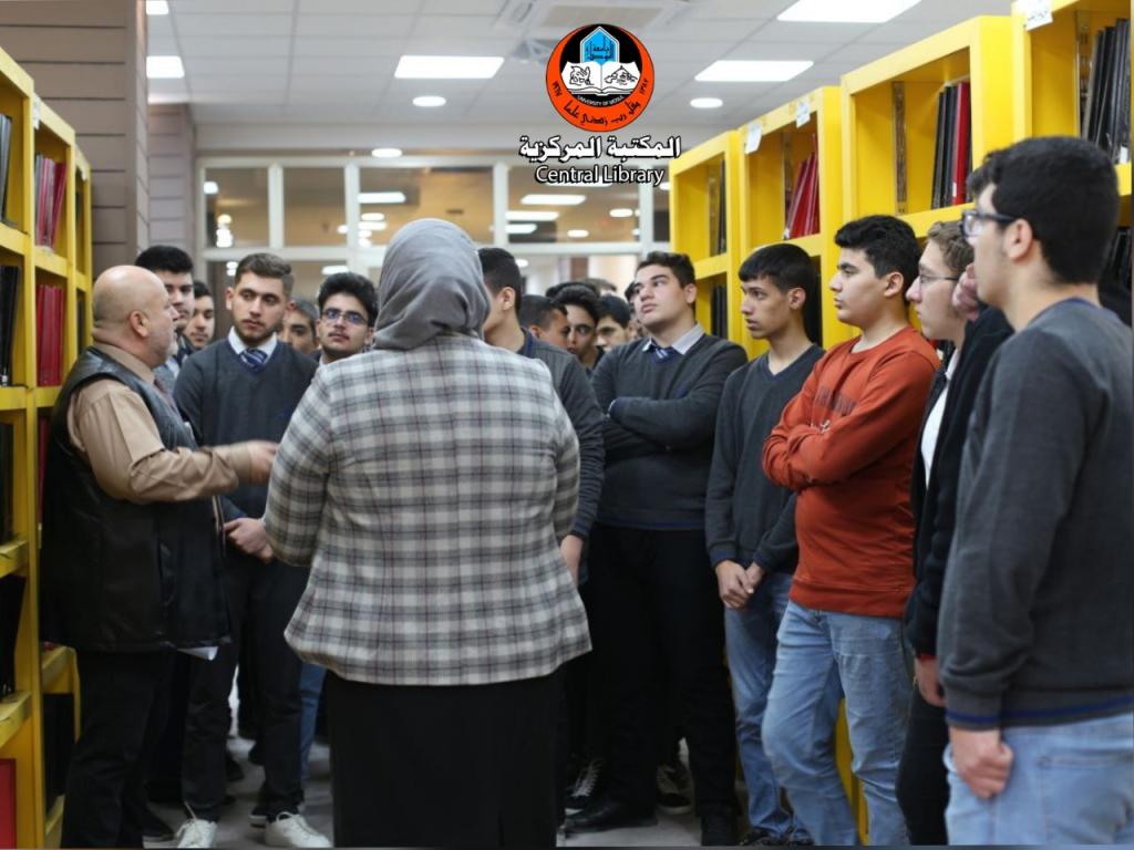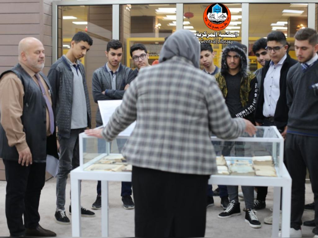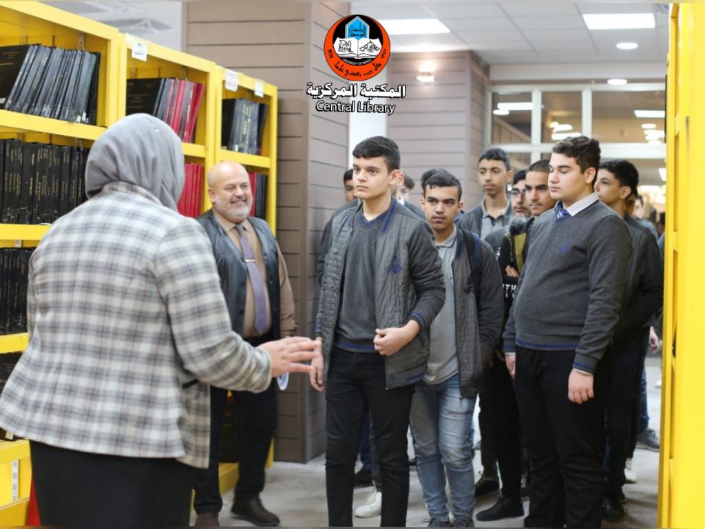 As part of the tireless efforts to convey the Central Library’s cognitive message to the Iraqi new generations, the General Secretariat of the University of Mosul Libraries received a group of teachers and students from the Alawail Private Secondary School for Boys. Ms. Rafal Alhamandi, Head of the User Service Division, accompanied the visitors and provided them with a historical glimpse about the Central Library and its prominent role in serving students and researchers