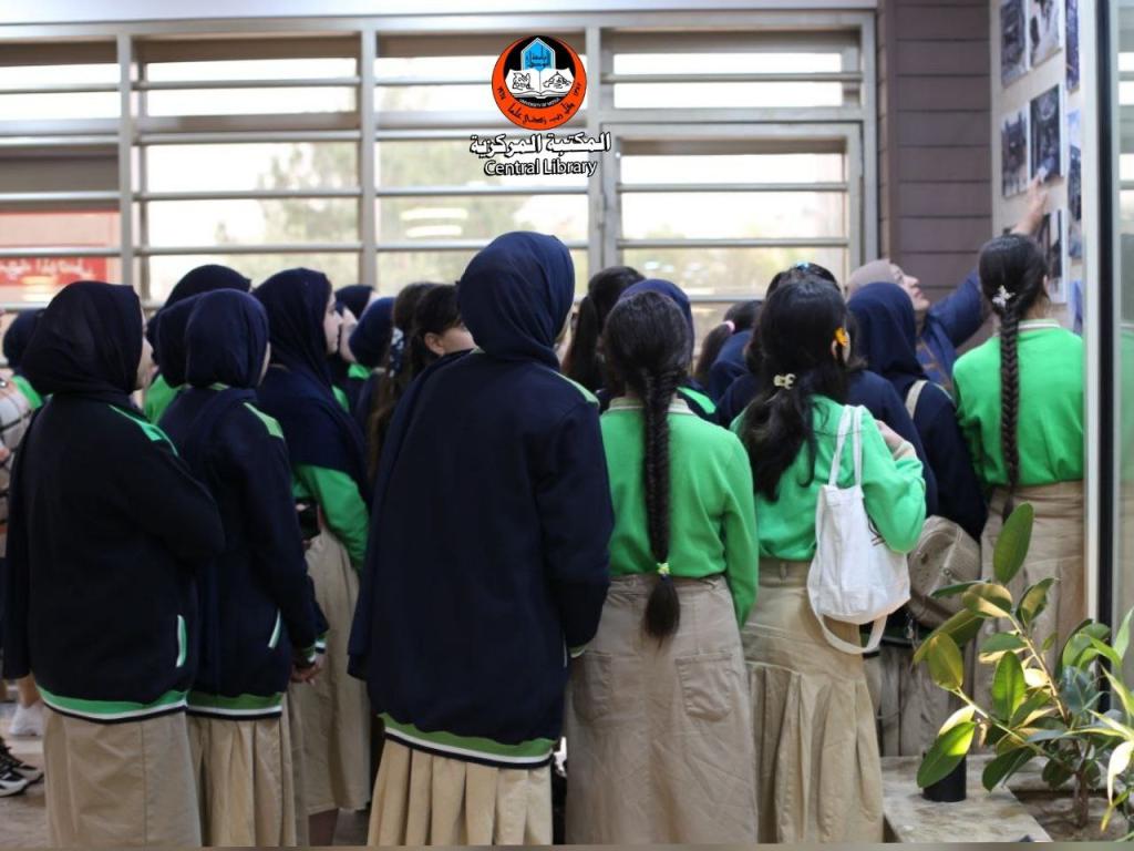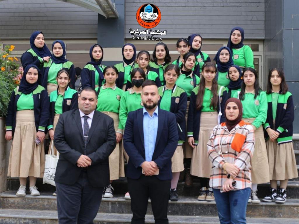 With a follow-up of the General Secretariat of the University of Mosul Libraries, the fourth and fifth grade students of the Alhuda Private Secondary School, accompanied by a group of their teachers visited the Central Library. Some of the library staff members welcomed them and took them on a tour inside the library, providing them with a glimpse of the library, its units and the services it provides to the library users.