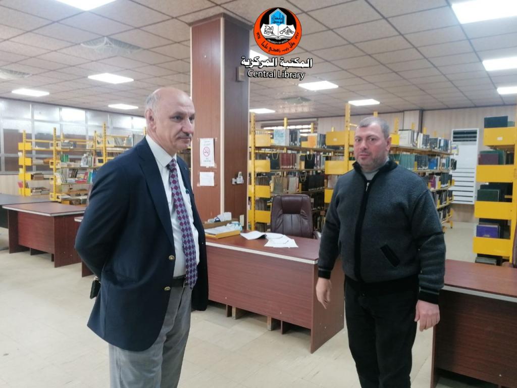 The Assistant President of the University of Mosul for Administrative Affairs, Prof. Dr. Wahid Alibrahimi visited the Ibn Khaldun Library to check on the workflow there and ensure that services are provided to the library users in the best way