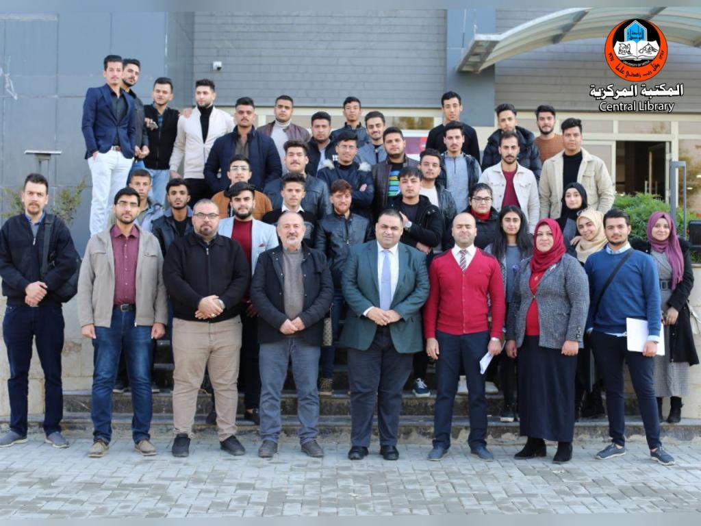 The Central Library received the first-year undergraduate students of the Department of Dams and Water Resources Engineering, College of Engineering, University of Mosul, accompanied by a number of the department’s lecturers, who paid a visit to the Central Library to discover this vibrant scientific and cultural landmark and to be briefed on its services. The visitors expressed their appreciation for the reception and the services provided to the library users
