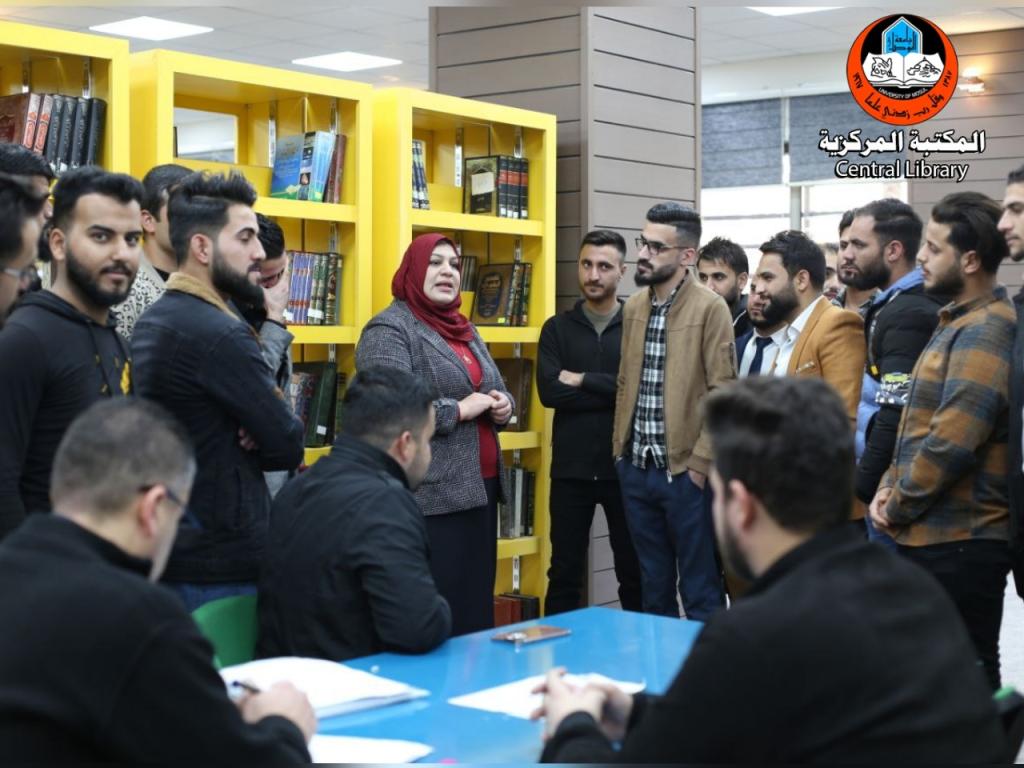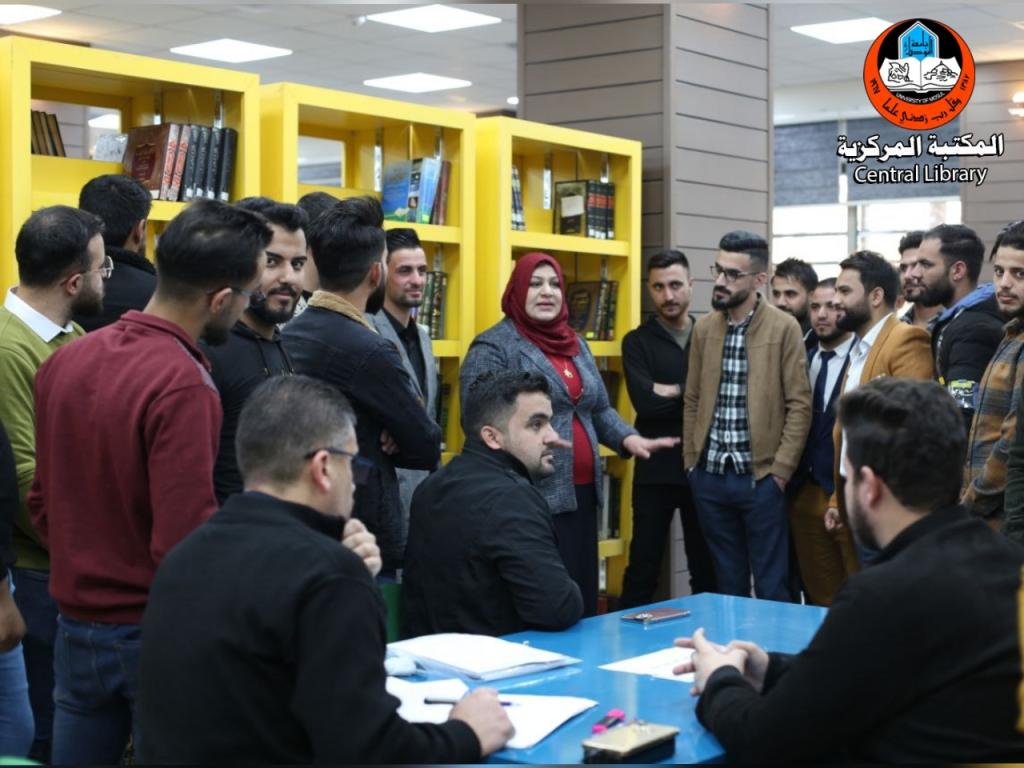 The Central Library received the four-year undergraduate students of the Department of Mathematics, College of Basic Education, University of Mosul, accompanied by Asst. Prof. Aisha Edris, who paid a visit to the library to be briefed on the library services. The visitors expressed their appreciation for the reception and the services provided to the library users.