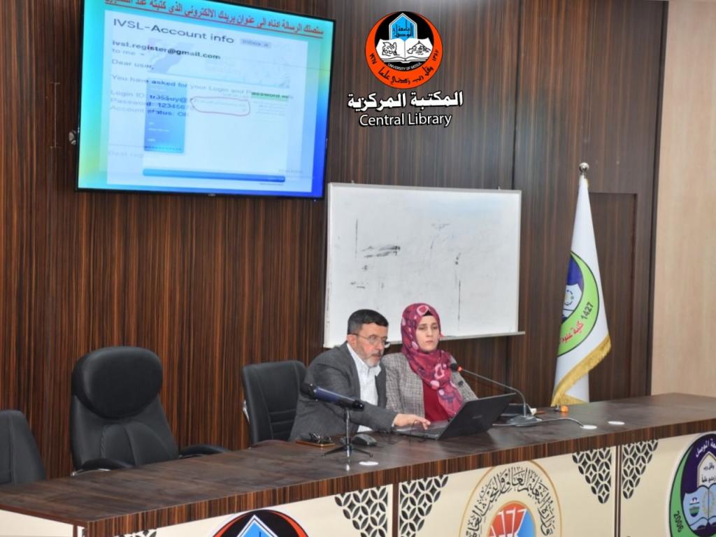 Under the auspices of Prof. Dr. Kossay Alahmady, President of the University of Mosul, and under the supervision of the Secretary General of the University Libraries, Mr. Sayf Al-Ashqar, and within the activities of the Continuing Education Division, the Central Library held an IVSL workshop at the College of Environmental Sciences and Technologies, University of Mosul. The workshop was delivered by Mr. Jalal Hikmat, Head of the Unit of the Iraq Virtual Science Library (IVSL) at the Central Library in cooperation with the College’s IVSL Link Member, Lect. Noor Abdulghani, and was attended by a number of lecturers and postgraduates. The attendants were briefed on the importance of the IVSL to them and they were given a glimpse of the establishment of the IVSL and how to register and search in it. During the workshop, questions and inquiries from the attendants were answered by Mr. Jalal.