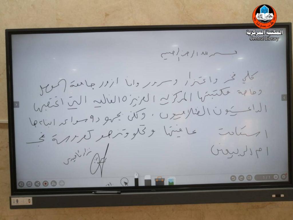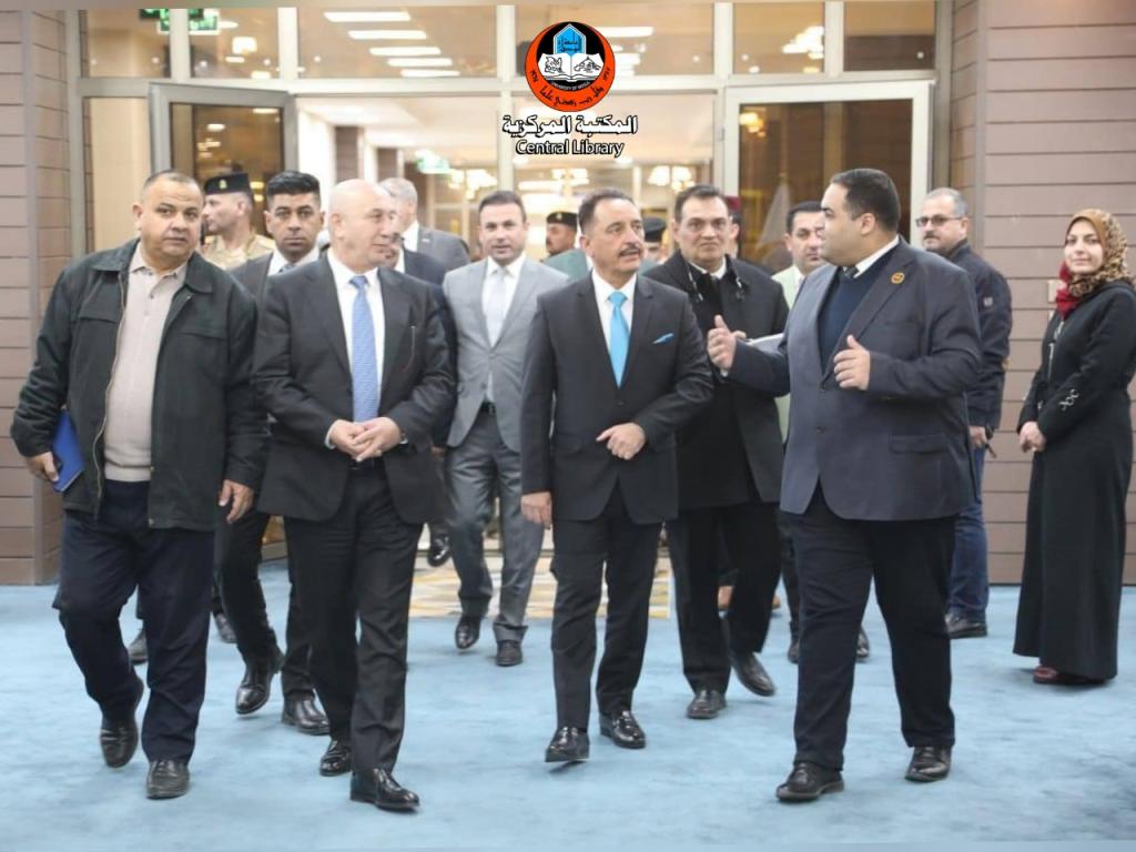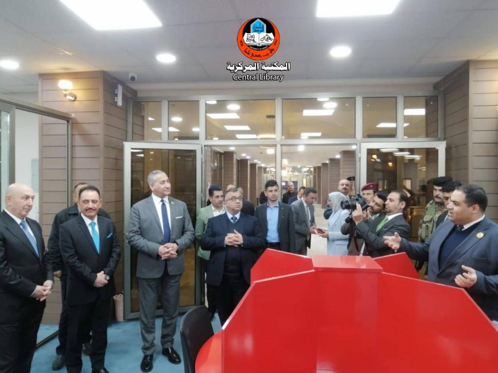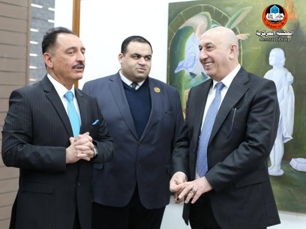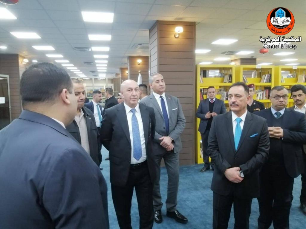 The President of the University of Mosul Prof. Dr. Kossay Alahmady, a number of the University administrative officials and the Secretary General of the University Libraries Mr. Sayf Al-Ashqar received the Minister of Environment Eng. Nizar Amidi during his visit to the Central Library. His Excellency the Minister of Environment was given an overview on the reconstructed Central Library, its services and materials and the future plans and aspirations to develop it. Mr. Minister commended the efforts exerted for restoring this long-established cultural and scientific landmark and wished for further advancement for the University of Mosul and the city of Mosul.