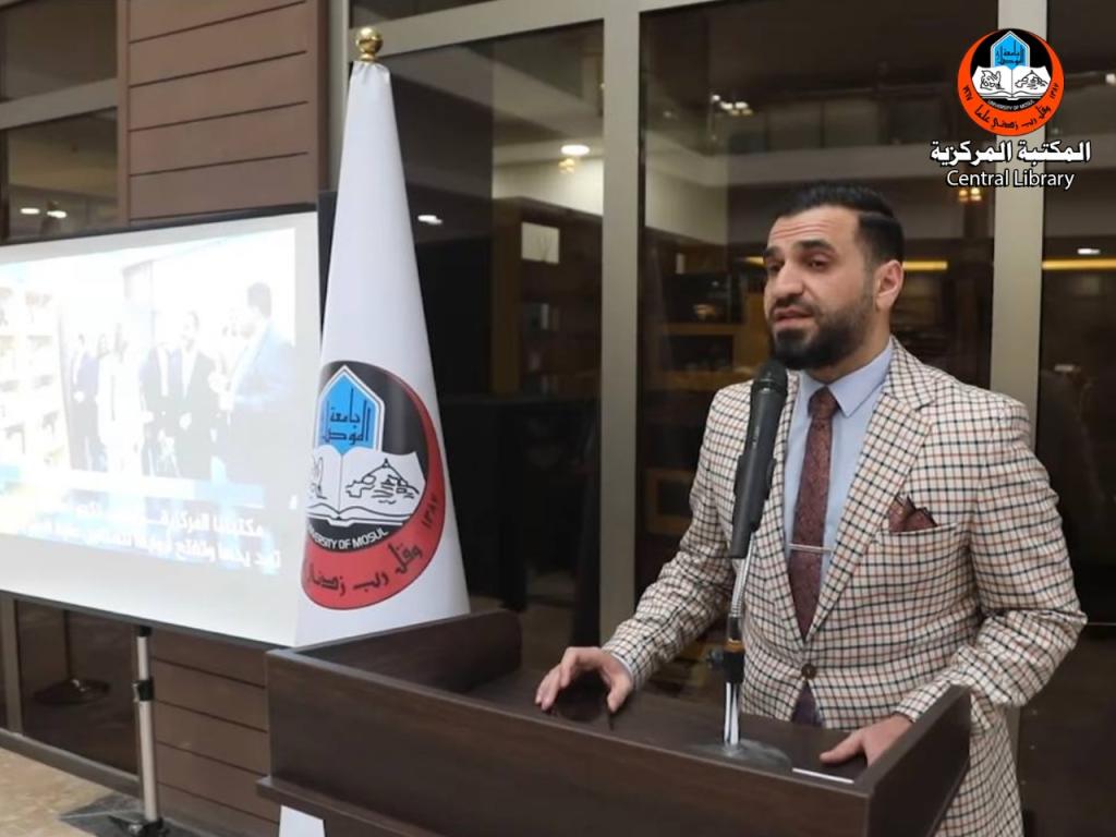 Under the auspices and presence of the President of the University of Mosul Prof. Dr. Kossay Alahmady, the General Secretariat of the University of Mosul Libraries conducted a celebration on the first anniversary of the reopening of the Central Library, which is adopted as the National Day of Iraqi Librarians. The celebration was attended by the University Council members, library staff members, a number of university faculties and students, some library retirees and guests. The celebration began with the recitation of some of the Holy Quran verses followed by speeches by Mr. Sayf Al-Ashqar, Secretary General of the University Libraries, and Ms. Shatha Ahmad, a library staff member, who mentioned the great efforts made by the University of Mosul, the library staff members and the society in cooperation with other local and international supporters to retrieve and restore the Central Library which was massively sabotaged by the terrorists. On this happy occasion, a documentary video was shown showing the importance of the Central Library and the University Rector honored and rewarded some of the recently retired library employees with gifts in recognition of their efforts during their years of service in the Central Library