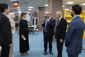 Accompanied by the President of the University, the respected Professor Dr.Wahid Mahmoud Al-Ibrahimi, the Central Library received a delegation “Model United Nations for Iraqi Youth”. The visiting delegation was received by Assistant Professor Dr.Muhammad Jassim Muhammad, Secretary-General of the Central Library, who welcomed the visiting delegation and the honored guests commendig the importance of this visit in supporting the efforts of cultural and knowledge cooperation and enhancing the communication between Iraqi higher education institutions and active youth organizations.