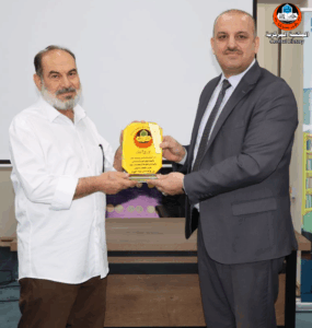 At the conclusion of the ceremony, a shield of appreciation was presented to Mr. Najm Al-Din Abdullah Khalaf Ibrahim Al-Hamdouni, in honor of his career full of giving and dedication to serving the library.