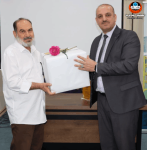 with the directions of the Presidency of the University of Mosul in honoring its retired members in appreciation of their giving and efforts, the General Secretariat of the Central Library held a ceremony honoring Mr. Najm al-Din Abdullah Khalaf Ibrahim al-Hamdouni on the occasion of his retirement, in the presence of a number of Central Library staff.