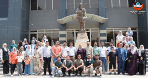 reviewing the modern devices and technologies that were supplied to the library within the above project. The delegation toured the library’s sections and briefed on the services provided to students and researchers, and also listened to a detailed explanation of the reconstruction efforts, technical modernization, and digitization programs implemented with the support of UNESCO and local and international partners.