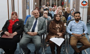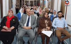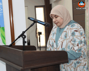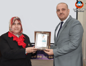 At the end .the Secretary-General of Libraries presented a shield of appreciation to Dr. Ghada Abdul Kareem Abdul Aziz in honor of her career full of giving and dedication to serving the university and the library