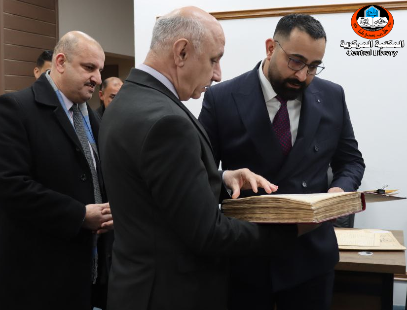 The Central Library at the University of Mosul received the Honorable President of the University, Professor Dr. Waheed Mahmoud Al-Ibrahimi, accompanied by a delegation from the management of the Ramada Hotel Group this morning, and they were received by Dr. Mohammed Jassim Hamad, Director-General of the University Libraries, on a field tour aimed at presenting the qualitative developments witnessed by the university in the field of infrastructure and scientific services