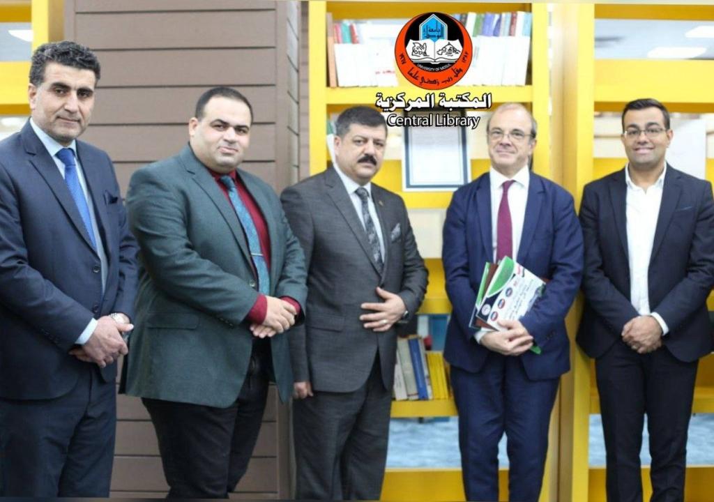 As part of the University of Mosul’s endeavor to maintain coordination and joint cooperation between the University of Mosul and international diplomatic figures, Mr. Sayf Al-Ashqar, Secretary General of the University Libraries, received Mr. Jean-Christophe Augé, Consul-General of France in Mosul , accompanied by a number of administrative officials of the University of Mosul Presidency. During the visit, Mr. Sayf took him on a tour in the recently reconstructed Central Library, briefing him on the library services and the plans that are being implemented under the supervision of Prof. Dr. Kossay Alahmady, President of the University of Mosul. The French Consul-General expressed his admiration for these achievements and donated some books, promising to continue cooperation with the University of Mosul.