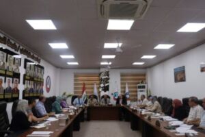 The College of Medicine Council held its seventeenth meeting for the academic year 2024-2025, chaired by the Dean of the College, Assistant Professor Dr. Hummam Ghanim Ibrahim, on Wednesday, June 25, 2025. The meeting was attended by the Vice Dean for Scientific Affairs, Dr. Ahmad Abdullah Al-Harbi, the Vice Dean for Administrative and Financial Affairs, Dr. Karam Turath Toufiq Agha, and the remaining council members, the heads of scientific departments.