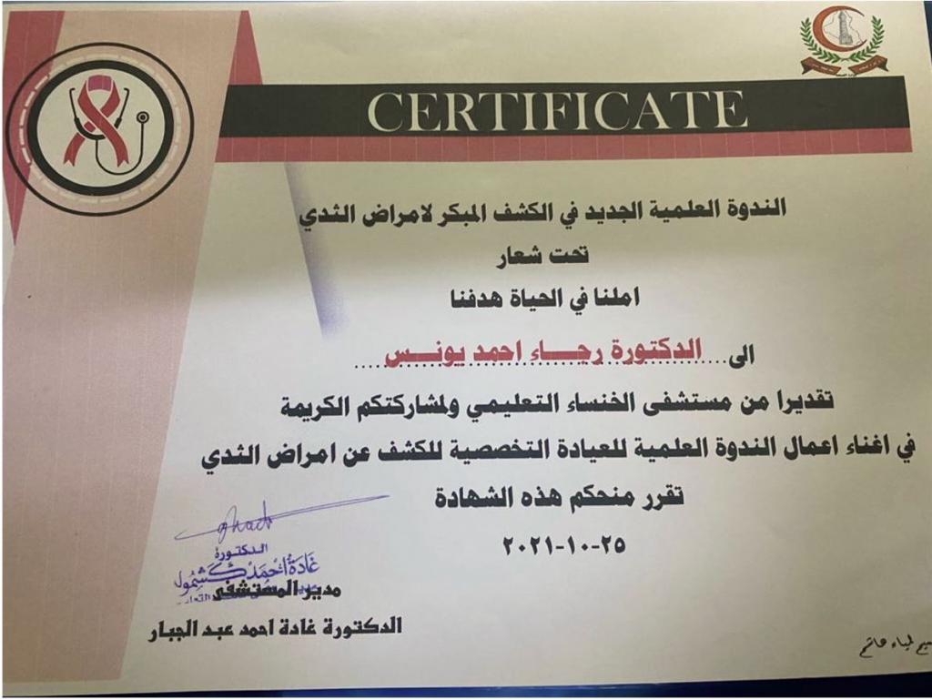 A Lecturer Doctor from the Department of Medical Physiology Participates in a Symposium Held by Al-Khansa Teaching Hospital on Breast Cancer