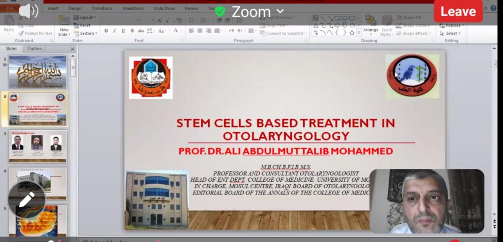 In the presence of the Dean of the College of Medicine, Prof Dr Basil Mohammednather Saeed, the surgery Prof Ali A. Muhammad, gave a virtual lecture at Ibn Sina University for Medical Sciences entitled “Stem Cell Based Treatment in Otolaryngology” on the evening of Wednesday, 4th August 2021.