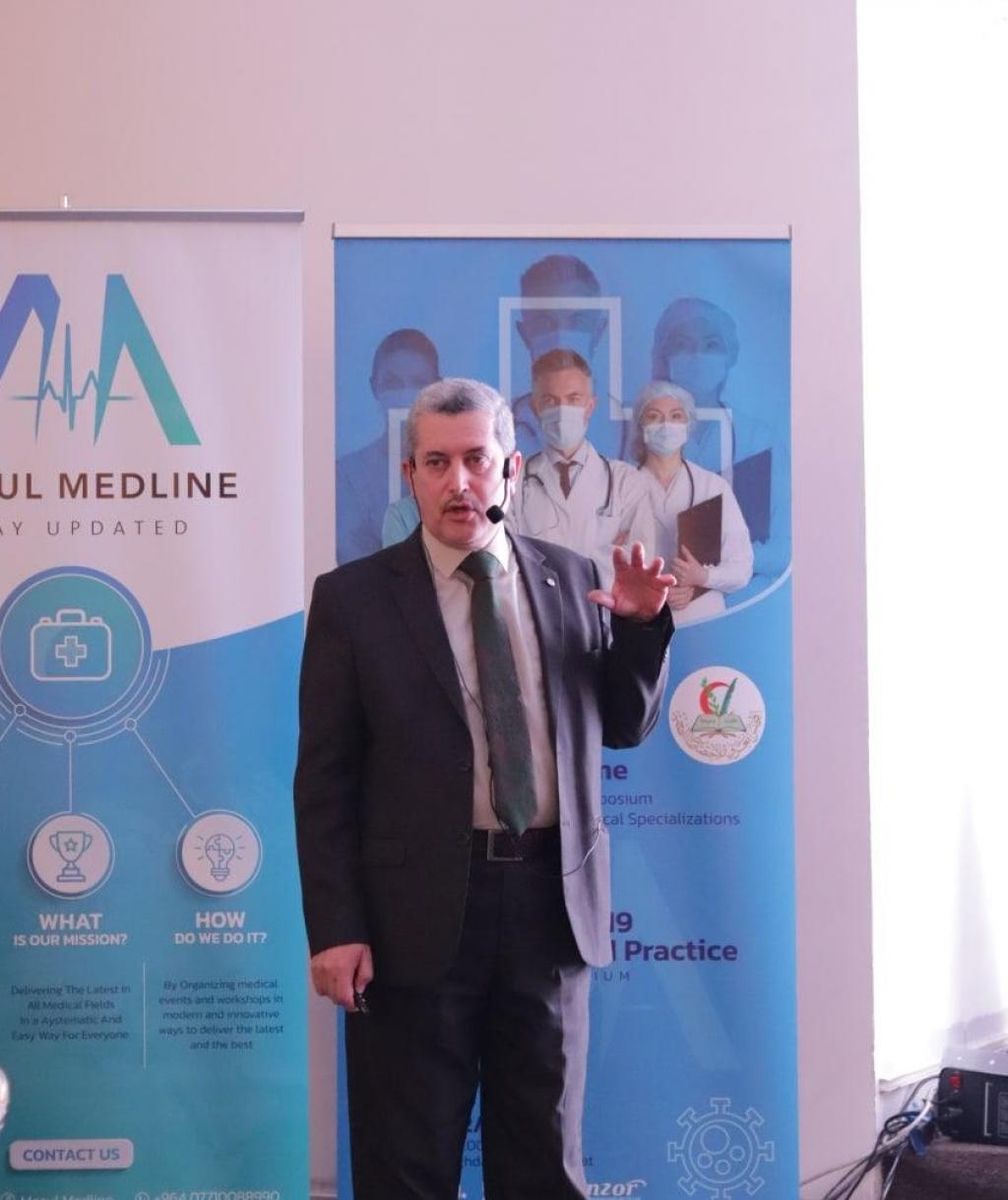 The symposium consisted of two scientific sessions alternately presented by a number of specialists, including the Assitance Prof Dr Rami M. Al-Hayali who gave his lecture entitled “Management of Covid-19.”