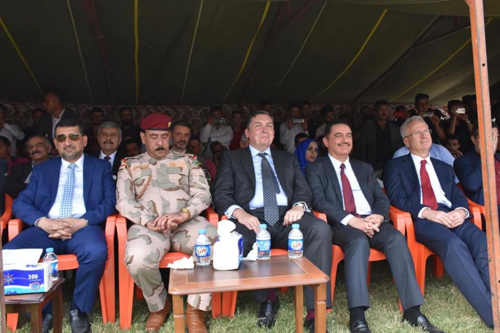 The University of Mosul witnessed a major cultural event through the opening of the two winged bulls on both sides of the student centre gate, on Thursday, 24th October 2019. The president of University of Mosul Prof Dr Qusay K. al-Ahmadi accompanied by the British and Spanish ambassadors, consulates of the two countries in Erbil, the commander of Nineveh operations Major General Noman A. al-Zobaie Director General of Cultural Relations Department Falah H. Shaker representative of the Iraqi Ministry of Culture Administrative, deans of the colleges (including the Dean of the College of Medicine, Mosul University, Prof Dr Basil M. Natheer) as well as a large gathering of students and employees of the university attended this ceremony. A plastic art exhibition was opened in the courtyard of the student centre set up by the Cultural House in the province of Nineveh. After the opining, a central artistic and cultural ceremony was held which included successive speeches on the importance of returning the life to the city and its university, focusing on the determination of the people of Nineveh province to rise it socially and culturally. Before concluding, the Spanish flamenco group performed a special musical and singing performance. The Dean of the College of Medicine was accompanied by the media staff of the College.
