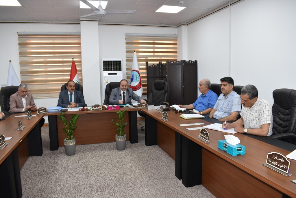 Council of the College/Twentieth MeetingOn the twenty-seventh day of June 2022, the College of Medicine held its twentieth meeting.The Council was chaired by Prof Dr Basil Mohammednathir Saeed, the Dean of the College, and the council was attended by Assistant Prof Dr Humam Gh. Al Zubair, Vice- Dean for Scientific Affairs (Secretary of the Council), Vice- Dean for Administrative Affairs, Assistant Lecturer Dr Karam T. Tawfiq, heads of all departments of the college, and registrar of the college, the representative of the teaching staff and the director of the Quality Division in this college. Before starting its work, the council hosted the initial beneficiaries’ committee for accreditation. The committee members were attended by Dr Qusay Hajim, Nineveh Governor’s Advisor for Technical Affairs and the Director of the Student Affairs and Registration Department at the University of Mosul, Assistant Prof Dr Raqib Hammadi.