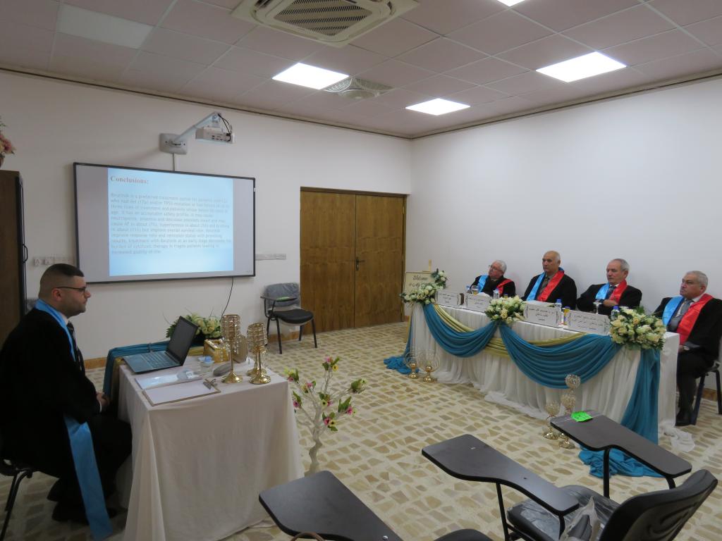 The student of the graduation paper of the Iraqi Board (Mosul Centre) in Internal Medicine, Sandy G. Ayo, discussed the effect and safety of the drug Ibrutinib for patients with chronic lymphocytic leukaemia in the city of Mosul / Iraq on Wednesday, 9th February 2022.