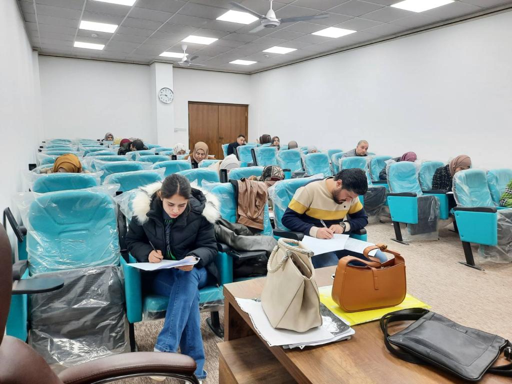 The Vice-Dean for Scientific Affairs, Assistant Prof Dr Humam Gh. Zubeer, and the lecturer Dr Khaled Walid, Director of the Division of Graduate Studies, attended the end-of-course exam in English for postgraduate students / diploma and master’s degrees today, Sunday, January 8, 2023. They looked at the nature of the questions and their science and the course of the exam and the coordination of its controls. The exam whose questions were set by Assistant Prof Dr Nida S. Omar consisted of two stages: The first stage included quick reading of an article within a specified time, and the second stage included questions about the article and questions that included other topics from the subjects given during the semester.