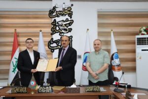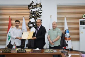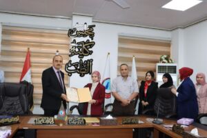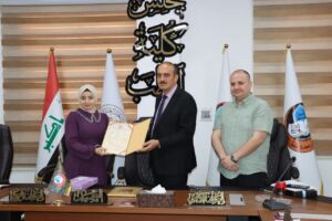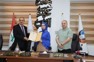 The Dean of the College, Assistant Professor Dr. Humam Ghanim Ibraahim, honored students who participated in editing the student magazine and podcast in the presence of the Vice Deans for Scientific Affairs, Dr. Ahmed Abdullah, and the Vice Dean for Administrative and Financial Affairs, Dr. Karam Turath Toufiq, on Wednesday, July 2, 2025. This recognition was in appreciation of their efforts and participation in these cultural activities, including writing and editing topics for the student magazine “Synaps” and participating in the podcast.