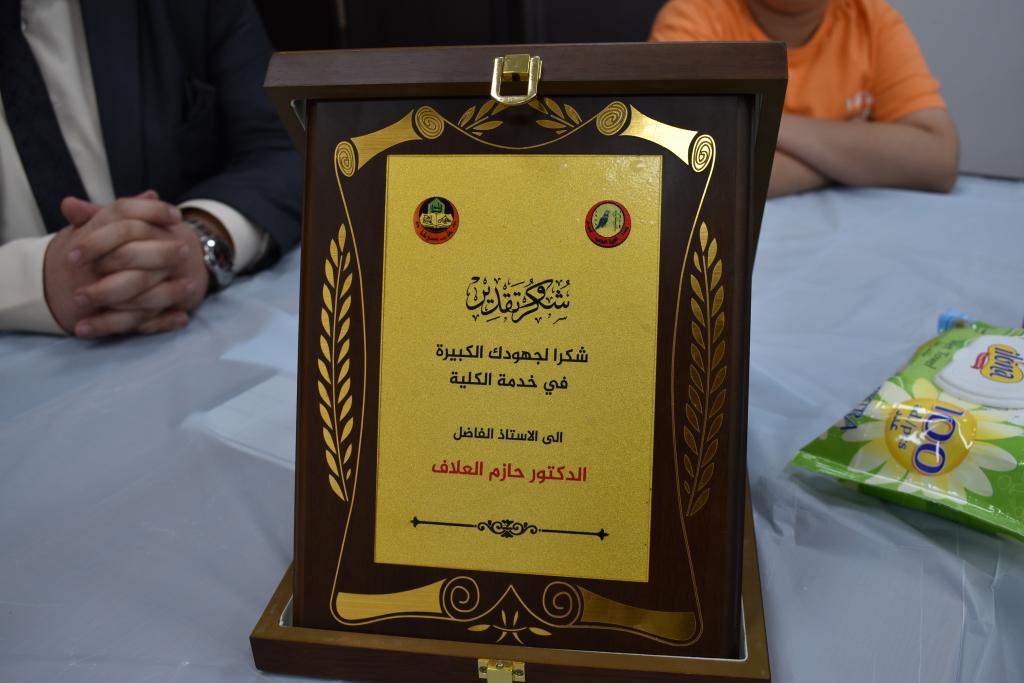 The Deanship of the College of Medicine, represented by Prof Dr Basil Mohammednathir Saeed, honors the Assistant Prof Dr Hazim Al-Allaf, and grants him a shield of “appreciation” on 6th June 2022 in appreciation of his great efforts and his important role in supporting the scientific process of the College of Medicine. The Scientific Vice-Dean and the Administrative Vice-Dean attended this honour.
