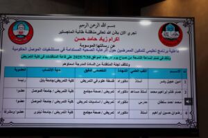 The thesis, submitted by the student Ikram Ziyad Hamed, addressed important scientific themes focusing on the development and implementation of an educational program aimed at enhancing the competencies of nurses in Mosul’s governmental hospitals and promoting the principles of sustainable healthcare. This contributes to improving the quality of health services in public health institutions and supports the achievement of the third Sustainable Development Goal (SDG 3): ensuring good health and well-being for all, and the fourth goal (SDG 4): quality education.