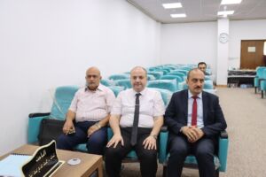 The discussion was attended by the Dean of the College, Assistant Professor Dr. Humam Ghanim Ibraahim, the Vice Dean for Administrative and Financial Affairs, Lecturer Dr. Karam Turath Toufiq, and a number of faculty members and postgraduate students.